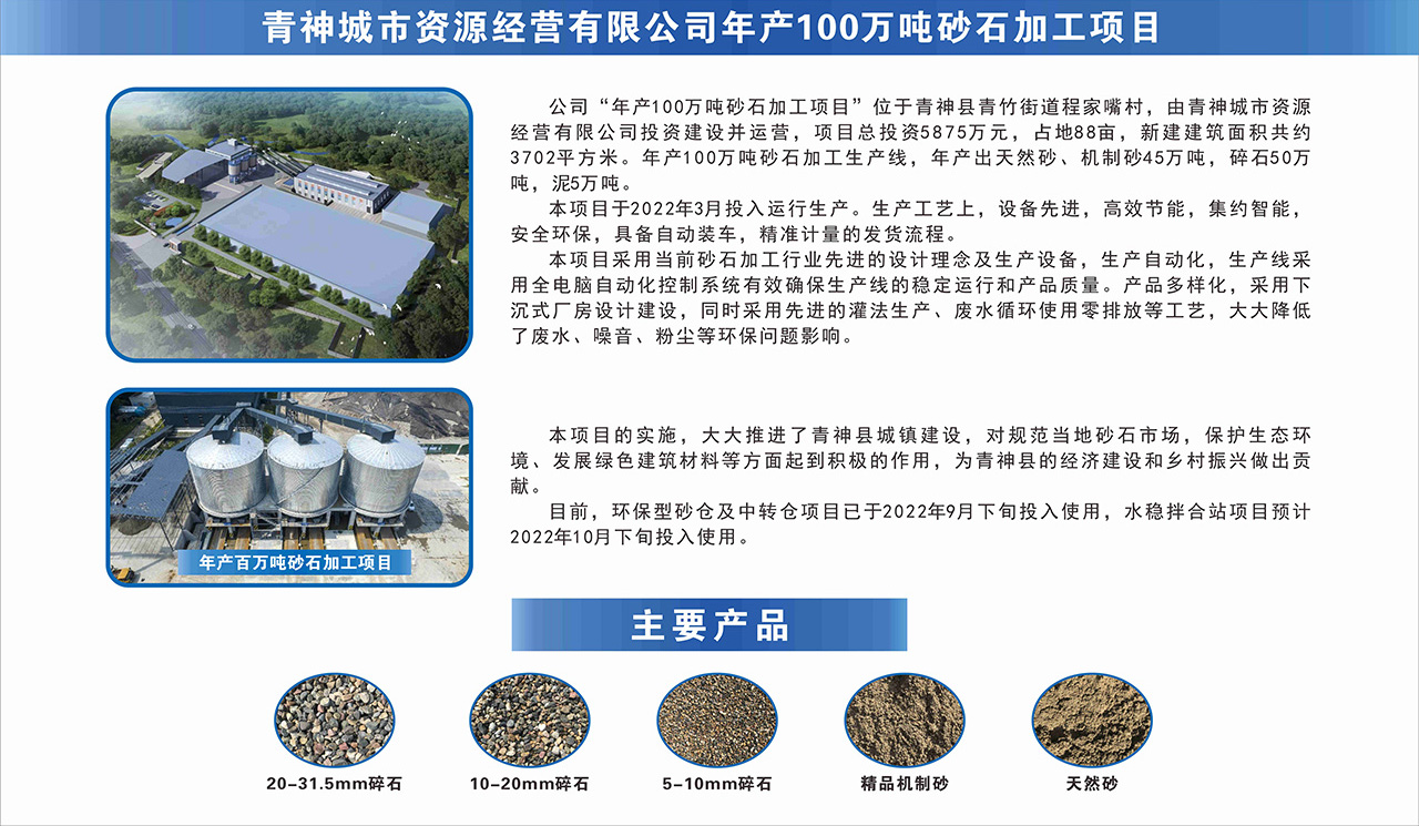 伴隨著廠區(qū)內(nèi)的陣陣轟鳴,青神城市資源公司年產(chǎn)百萬噸砂石加工項目于3月1日正式投產(chǎn)。該公司由眉山市城市發(fā)展投資有限責(zé)任公司、青神發(fā)展投資集團(tuán)有限公司出資成立,是市縣國企融合發(fā)展的標(biāo)桿企業(yè)之一。